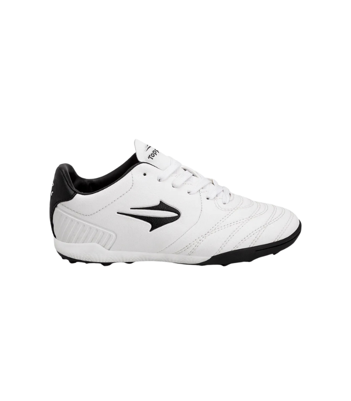 Los San Ciro V FG Kids de Topper llegan con una silueta más liviana y moderna, pensados para ofrecer un gran rendimiento en canchas de césped natural. Su capellada de cuero sintético brinda un excelente toque con la pelota, mientras que la suela de TPU con tapones fijos asegura tracción y estabilidad en cada jugada.