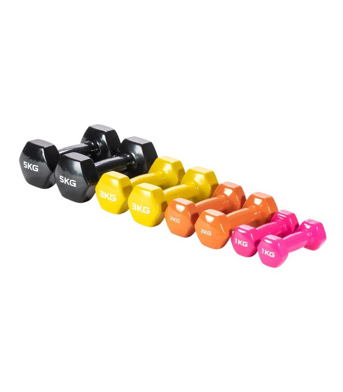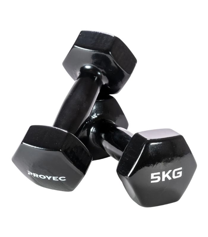 Ideal para fuerza, tonificación o funcional, esta mancuerna de 5 kg Proyec está fabricada en fundición maciza con recubrimiento vinílico de alta resistencia que brinda un agarre seguro y protege el piso. Su forma hexagonal evita deslizamientos y rodaduras, perfecta para usar en casa o en el gimnasio. Se vende por unidad.