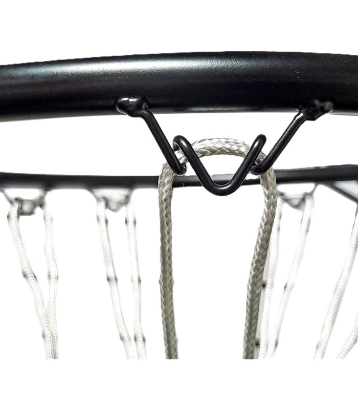 Aro reforzado de acero y tablero resistente, ideal para entrenar y jugar en casa
