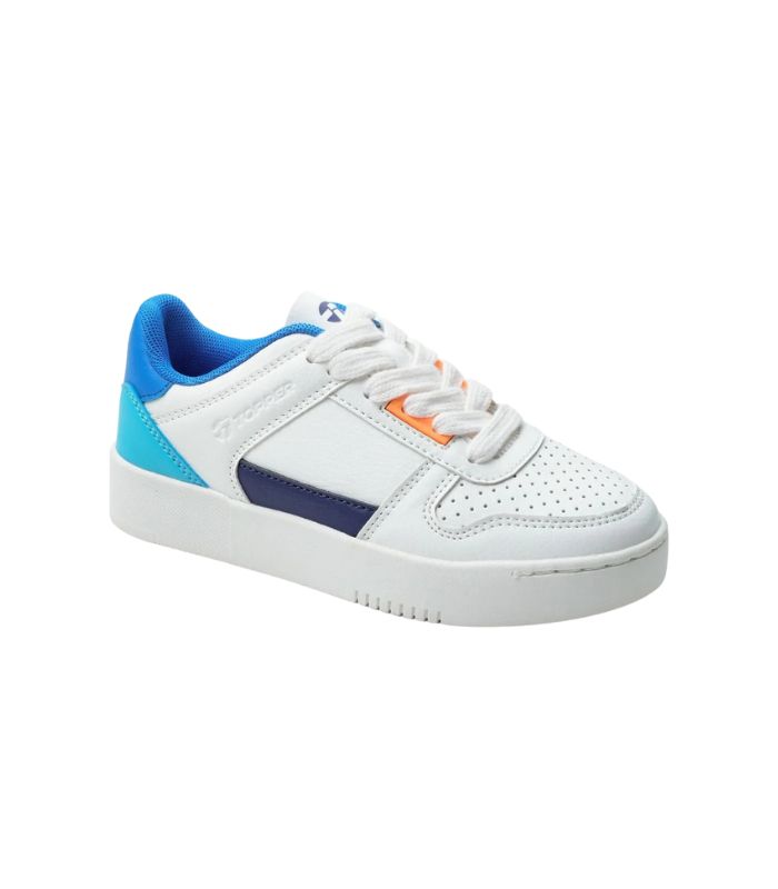 Las Topper Graf Kids combinan diseño retro y comodidad para el uso diario de los más chicos. Su capellada de cuero sintético con refuerzos y microperforaciones ofrece durabilidad y ventilación, mientras que los cordones de algodón aseguran un ajuste firme. La suela de goma moldeada con costura black brinda gran tracción y resistencia, ideal para acompañar cada movimiento en la escuela, el juego o el deporte.