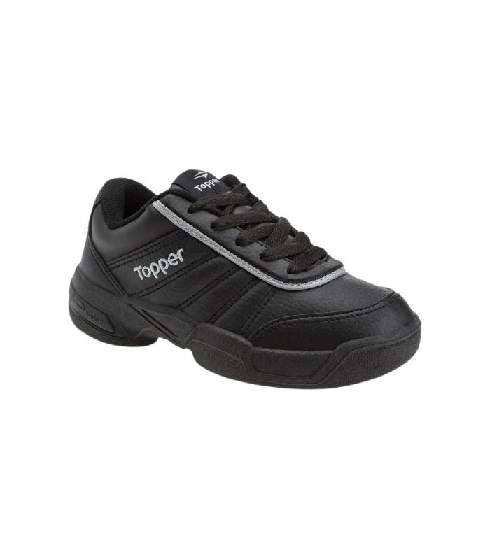 Las Topper Tie Break II Kids están diseñadas para acompañar el ritmo de los chicos con durabilidad y confort. Su capellada de cuero sintético reforzado protege especialmente la puntera contra el desgaste, ideal para uso intensivo escolar. La suela inyectada de PU brinda una excelente amortiguación y comodidad, asegurando estabilidad en cada paso.